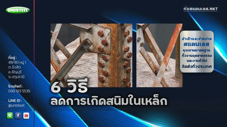 วิธีลดการเกิดสนิมในเหล็ก เพื่อให้เหล็กคงทนและป้องกันสนิมอย่างเหมาะสม มีหลายวิธีที่สามารถนำมาใช้ได้ในการรักษาและบำรุงเหล็ก ด้วยกระบวนการดูแลและรักษาเหล็กอย่างถูกต้อง จะช่วยให้เหล็กคงคุณภาพและทนทานต่อสภาพแวดล้อมต่าง ๆ ได้อย่างเหมาะสม และสามารถให้บริการในงานที่ต้องการความทนทานและคงทนสูงอย่างมีประสิทธิภาพทุกครั้ง ปรึกษาฟรี LINE ID : @unisteel